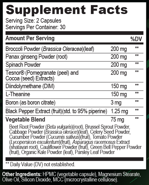 TestoGreens MAX also contains DIM. DIM is a powerful compound derived from cruciferous vegetables that provides support to help remove excess estrogen from the body. *